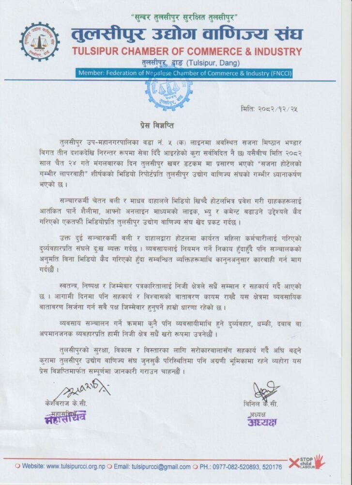 सन्तोष केसी, तुलसीपुर, चैत २५ । ज्ञानज्योती कलेज तुलसीपुर र इन्टरनेसनल स्कूल अफ टुरिजम होटल