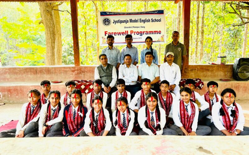 ज्योतिपुञ्ज मोडेल ईङ्लिश स्कुल रामपुरमा पढाई सकेर जान लागेका विद्यार्थीको बिदाई