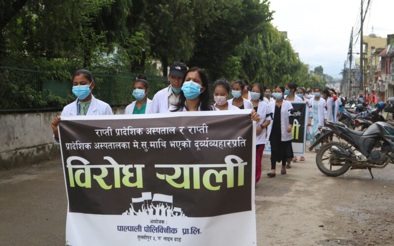 मेसुलाई कालोमोसो दल्नेलाई कारबाहीको माग गर्दै डाक्टर नर्स सडक संघर्षमा उत्रिए