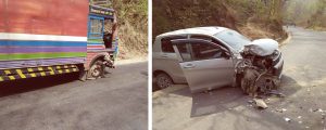 नेकपाका नेताहरु सवार कारलाई ट्रकले ठक्कर दियो