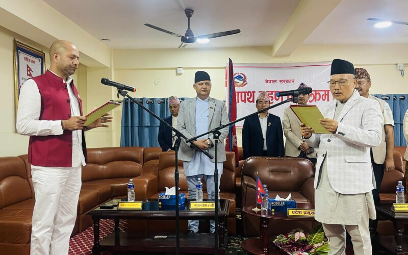 नबनियुक्त युवा तथा खेलकुद मन्त्री पाण्डेले लिए सपथ