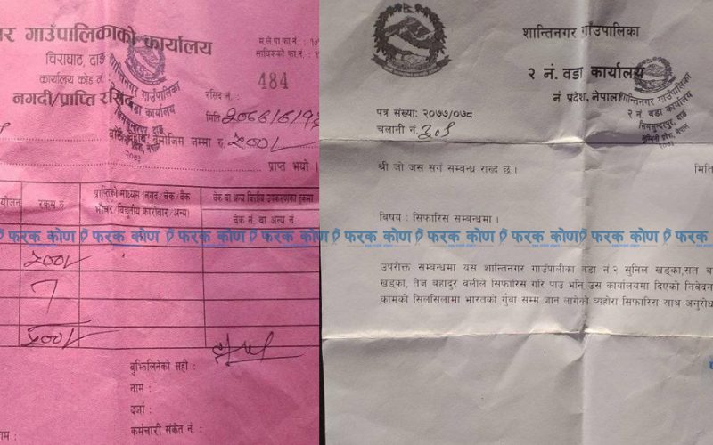 शान्तिनगर २ वडा कार्यालयले भारत जाने मदजुरवाट सिफारिस बाफत प्रतिव्यक्ति ५ सय असुल्दै