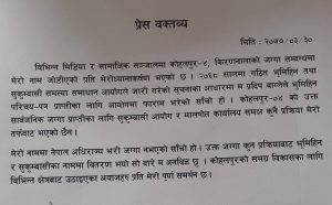 जग्गा प्रकरणमा आरोपित पत्रकारलाई साधारण सदस्यवाट निलम्वन गर्न माग