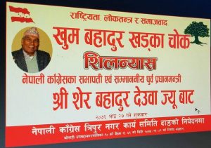काँग्रेस नेता खुमबहादुर खड्का चोकको सिलन्यास देउवाले गर्ने