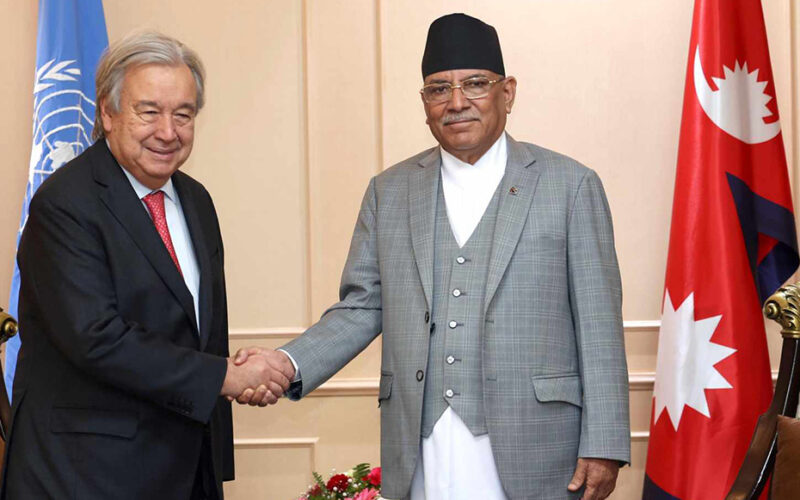संयुक्त राष्ट्रसंघका महासचिव गुटेरेसलाई प्रधानमन्त्री प्रचण्डले गरे स्वागत