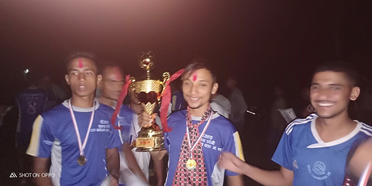 दाङ,असार २२ । तुलसीपुर उपमहानगरपालिका वडा नं. १० र ११ को संयुक्त आयोजनामा भएको वडा स्तरिय फूटवल प्रतियोगिताको उपाधि वडा नं. ११ ले जितेको छ ।