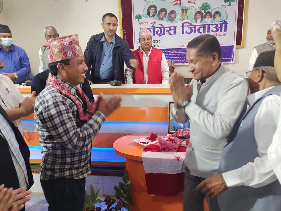 नेपाली काँग्रेसका केन्द्रीय सदस्य तथा दाङका लागि केन्द्रीय प्रतिनिधि चन्द्रबहादुर केसी, केन्द्रीय सदस्य गेहेन्द्र गिरी, दाङका सभापति शंकरप्रशाद डाँगी, दाङ क्षेत्र नं. ३ का सभापति जगतबहादुर खड्का, प्रदेश सभा सदस्य शंकर गिरी लगायका नेताहरुले नब प्रबेशीलाई पार्टीमा स्वागत गरेका थिए ।