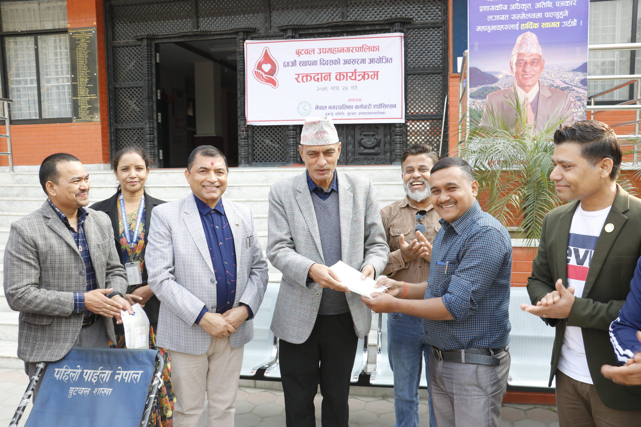 शुक्रबार बिहान नेपाल नगरपालिका कर्मचारी एशोसिएशन इकाइ समितिको आयोजनामा रक्तदान कार्यक्रम भएको छ ।