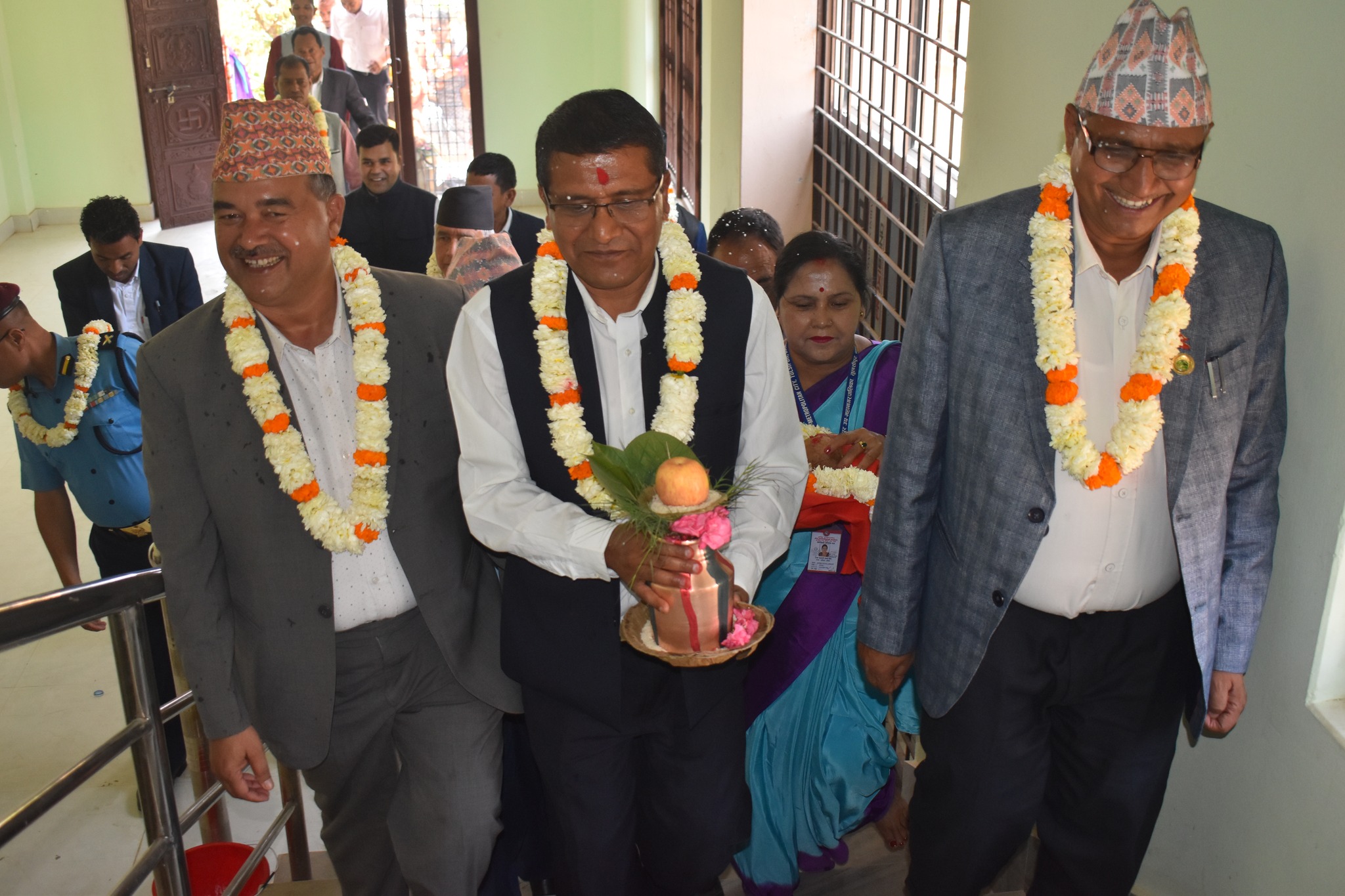 त्यस अवसरमा नेपाली काँग्रेसका नेता मुक्तीप्रसाद न्यौपानेले जनतालाई दिने सेवा सुविधाहरु नयाँ प्रशासनिक भवनबाट छिटो छरितो हुनुपर्नेमा जोड दिए । पछिल्लो समय भएका विकास निर्माण दिगो र टिकाउ नभएको बताउँदैं उनले त्यसलाई सच्यार अगाडी बढनुपर्ने बताए । उनले शैक्षिक सरुवा–बढुवा देखि विभिन्न कुराहरुमा राजनिति आस्थामा काम भएको भन्दै सबै जनताको समान अवसर र पहुँच हुनुपर्ने तर्क गरे ।