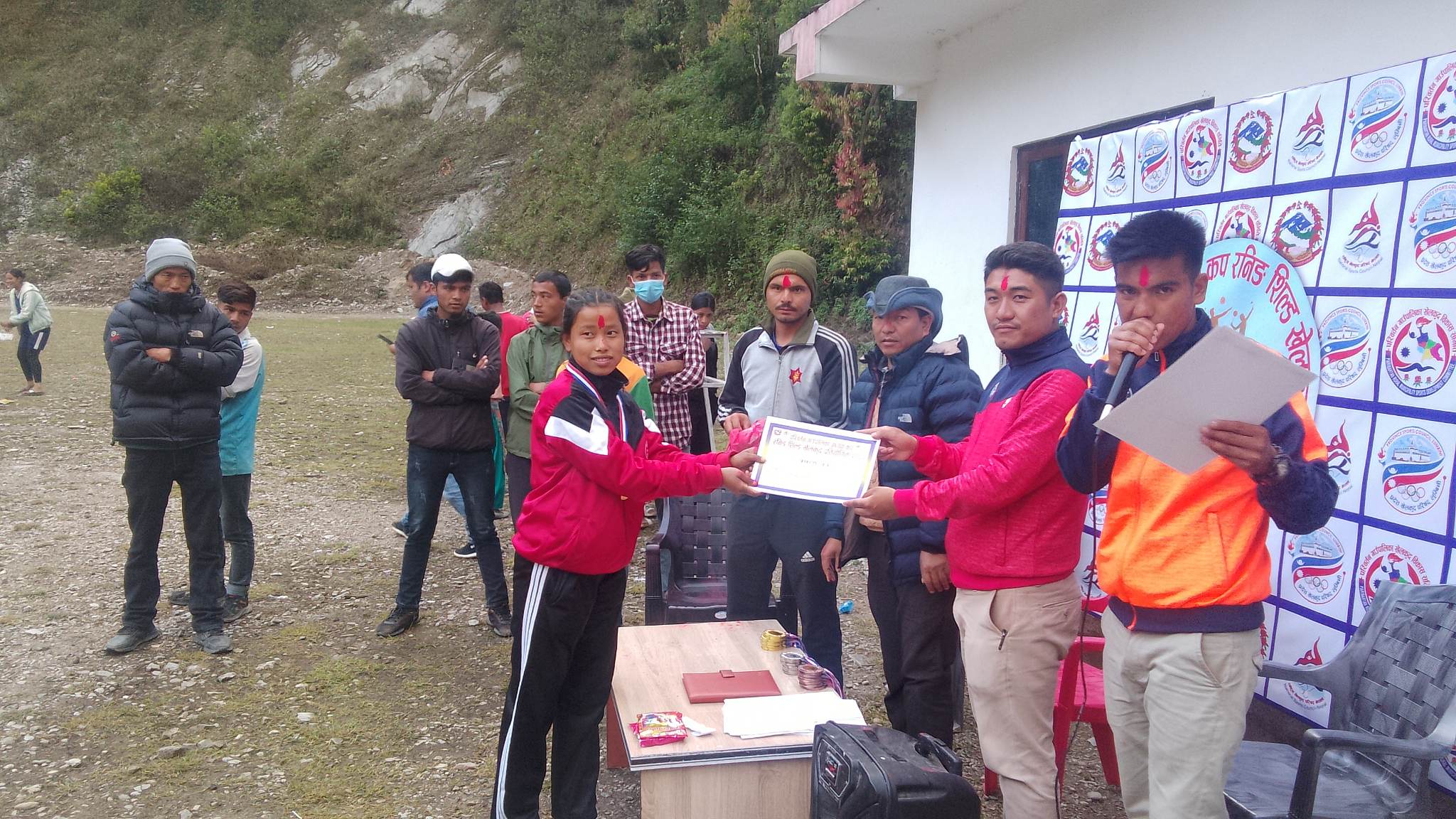 गाउँपालिकाका अध्यक्ष बुढा मगरले गोल मेडल वितरण गर्नुभयो र गाउँपालिकाका प्रवक्ता बुढा मगरले अबिर ल्याप्न गरेका थिए भने गाउँपालिकाका प्रमुख प्रशासकीय अधिकृत जि.एमले प्रमाणपत्र वितरण गरेका थिए ।