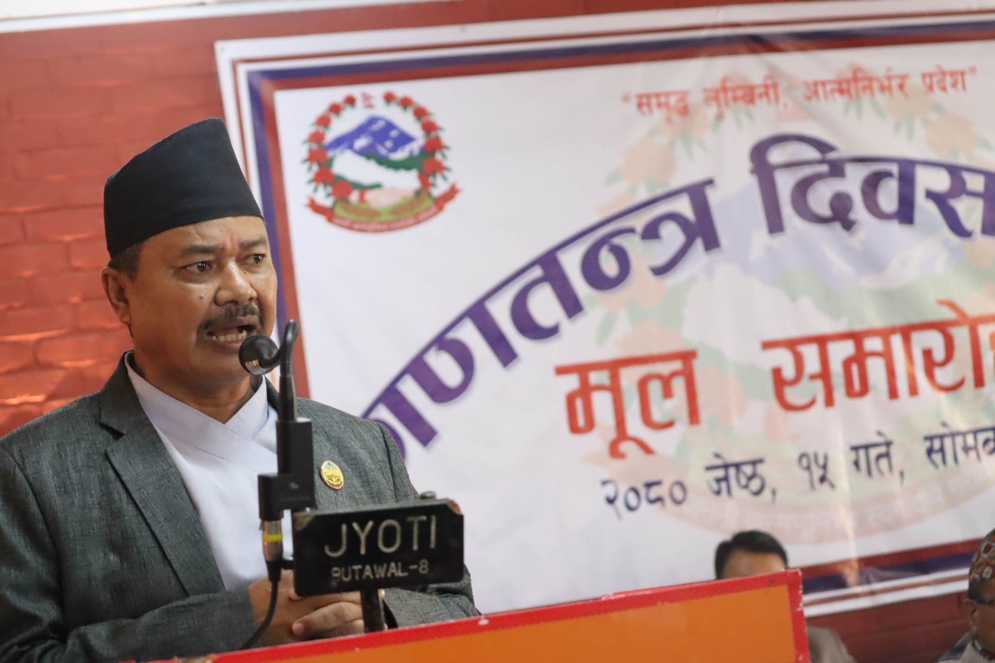अहिले पनि तहगत रुपमा संविधानले तोकेको अधिकारहरु प्राप्त हुन नसकेको भन्दै मुख्यमन्त्रीले गणतन्त्र संस्थागत हुन नसक्ने, जनताको अपेक्षा पूरा गर्न नसकिने, आ–आफ्नो दायित्व पूरा गर्न नसक्ने जस्ता समस्या देखिएको औँल्याए । साथै उनले संघीय लोकतान्त्रिक गणतन्त्रलाई संस्थागत गर्न तीन तहकै सरकार जिम्मेवार बन्नु पर्ने बताए ।