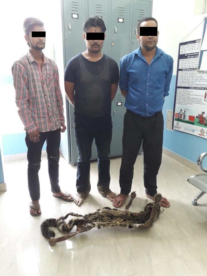 उनीहरु तीनैजनालाई आइतबार बिहान साढे १० बजेतिर भालुवाङ बजारबाट पक्राउ गरिएको प्रहरीले जानकारी दिएको छ । गोप्य सूचनाको आधारमा उनीहरुलाई पक्राउ गरिएको प्रहरीले बताएको छ । पक्राउ परेका व्यक्तिहरुको साथबाट ध्वाँसे चितुवाको छाला बरामद भएको र उनीहरुलाई आवश्यक कारवाहीको लागि डिभिजन वन कार्यालय लमही दाङको जिम्मा लगाइएको प्रहरीले बताएको छ ।