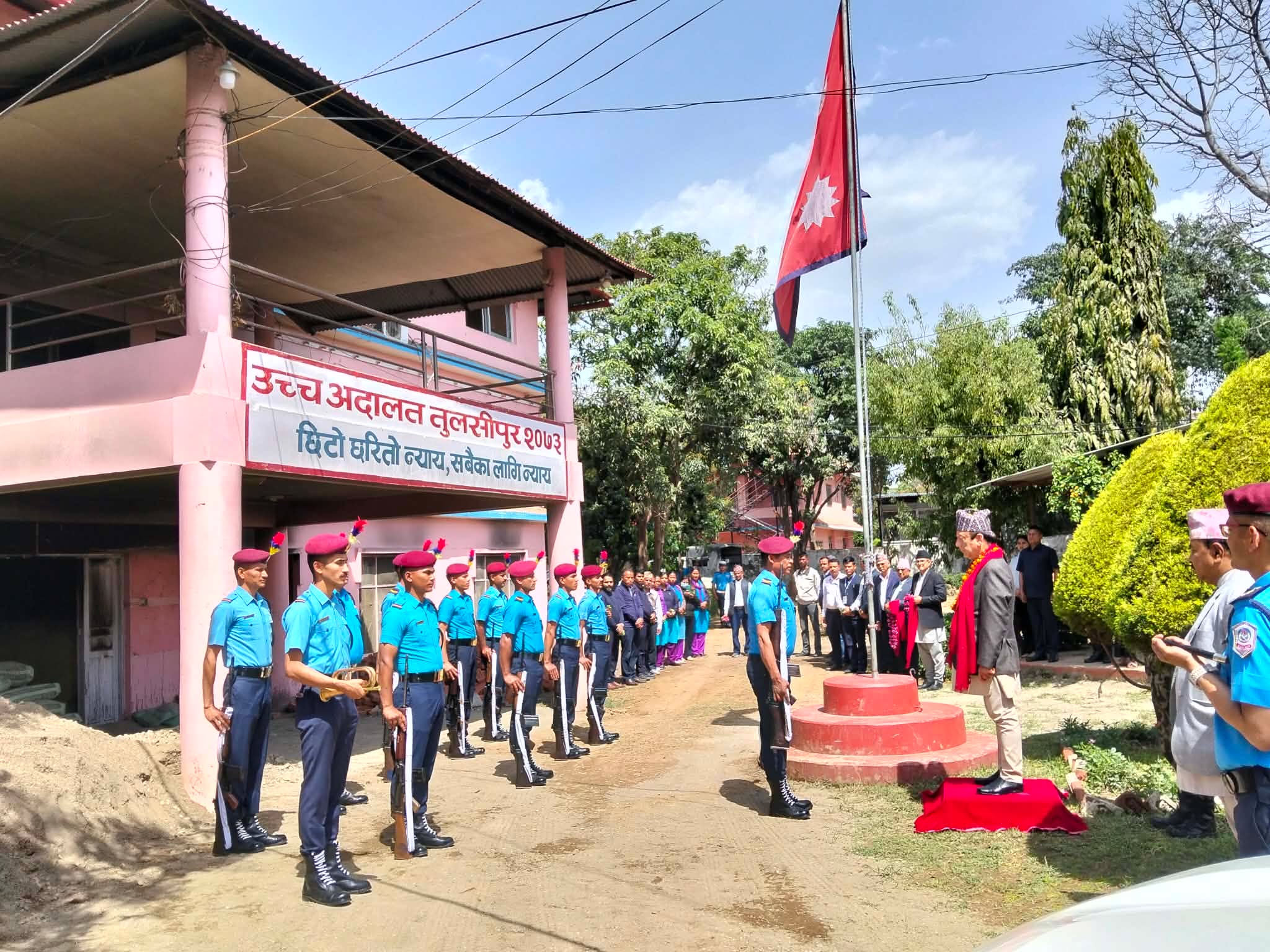 ‘ त्यो बेला तुलसीपुरका मेयरसाप टीकाराम खड्काले आँफु त्रिपालमा बस्नु परेपनि म तीस लाख दिन्छु भन्दै रोक्नु भयो र यतिखेर तुलसीपुरको लगानीमा निर्माण भएका इजलास तयारी अवस्थामा छन् । हामी हप्ता दिनमै त्यहाँबाट सेवा सुरु गर्दै छौं,’ तिवारीले भने ।