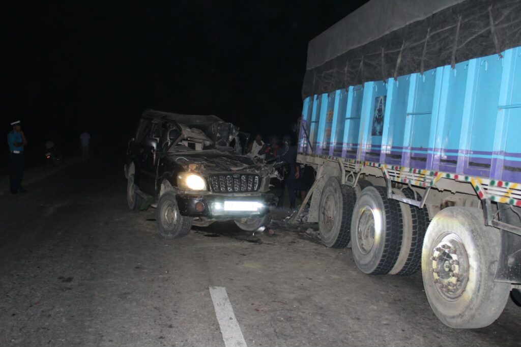 सडकमा साइड लगाइ रोकिराखेको ट्रकमा पछाडि बाट स्कार्पियो ठोक्किदा दुई जनाको मृत्यु भएको छ ।