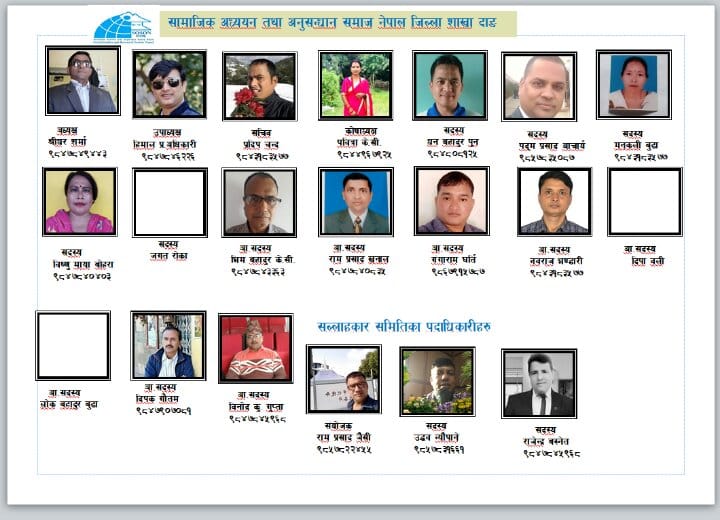 दाङ, असोज १५। सामाजिक अध्ययन तथा अनुसन्धान समाज नेपाल (SOSON) दाङ गठन गरिएको छ । सामाजिक अध्ययन विषय संग सम्बन्धित जिल्ला स्तरमा छरिएर रहेका शिक्षक तथा सरोकारवाला सहित को सम्पन्न जिल्ला स्तरिय जुम बैठक ले श्रीधर शर्मा अध्यक्ष रहेको १७ सदस्यीय सामाजिक अध्ययन तथा अनुसन्धान समाज नेपाल दाङ शाखा गठन गरेको हो ।